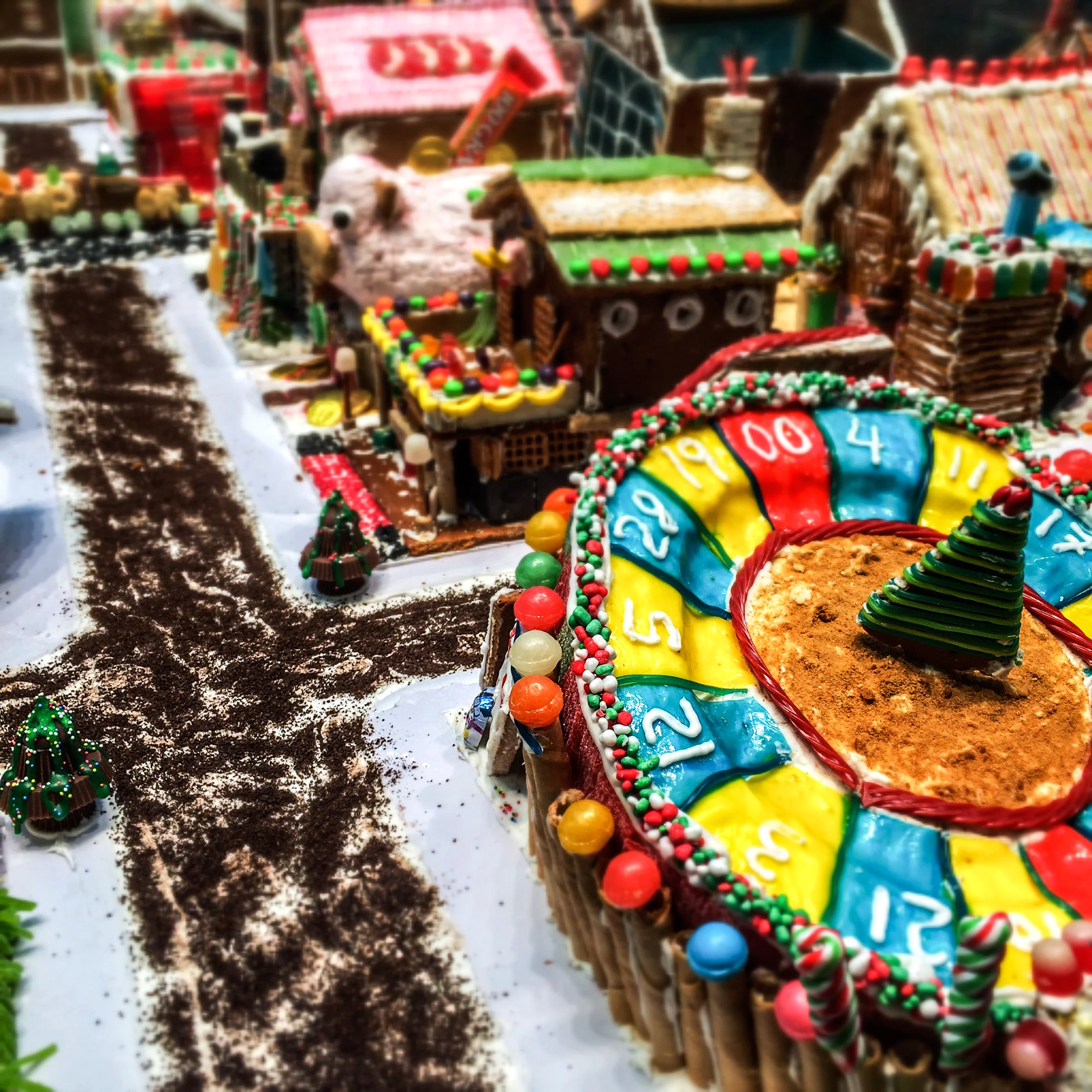 A photo of the gingerbread/candy town at Northpark mall; I added a bit of Snapseed to make it more visually appealing.