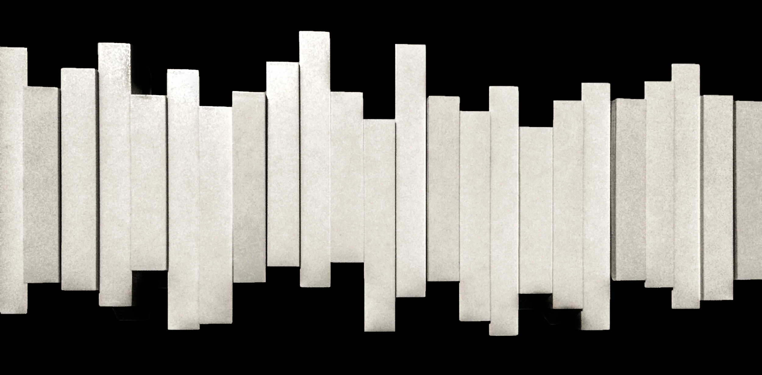 This unique pattern is actually of a coat hanger. Certain individual bars pull out in order to hang the coats, but when not in use it becomes an abstract piece of art.